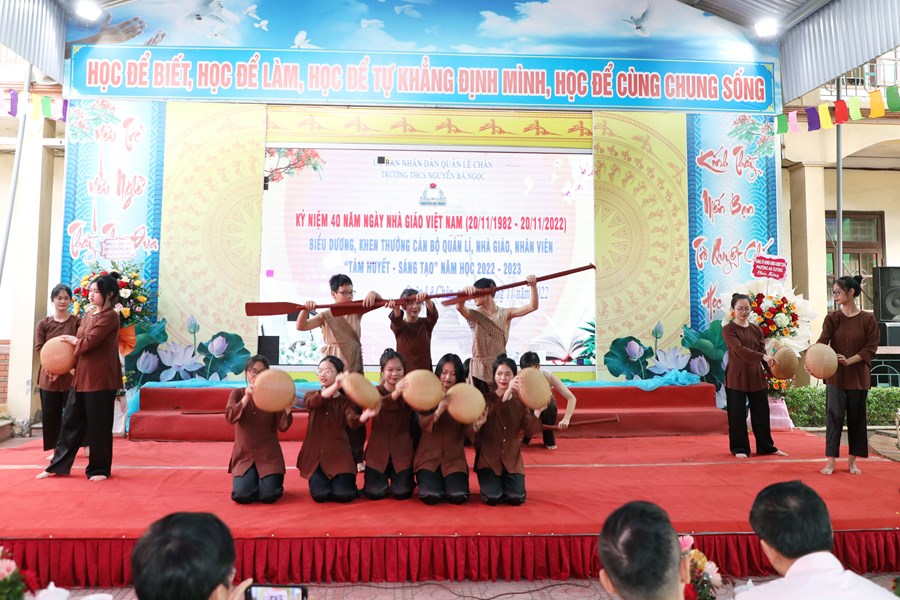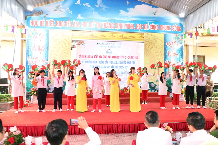 “Tôn sư trọng đạo”, “uống nước nhớ nguồn” đã trở thành một nét đẹp truyền thống của dân tộc ta từ ngàn đời nay. Hàng năm cứ vào ngày 20-11, khắp cả nước lại tưng bừng kỉ niệm ngày Nhà giáo Việt Nam, tôn vinh những người thầy đã cống hiến cho nền giáo dục nước nhà. Hoà trong niềm hân hoan, phấn khởi đó, sáng ngày 18/11, Trường THCS Nguyễn Bá Ngọc long trọng tổ chức chương trình kỉ niệm 40 năm Ngày nhà giáo Việt Nam (20/11/1982 – 20/11/2022); 67 năm Truyền thống ngành Giáo dục Hải Phòng (1955 - 2022); biểu dương Nhà giáo tiêu biểu xuất sắc giai đoạn 1982 - 2022, Nhà giáo tâm huyết, sáng tạo lần thứ 2.