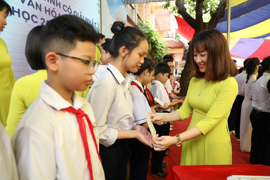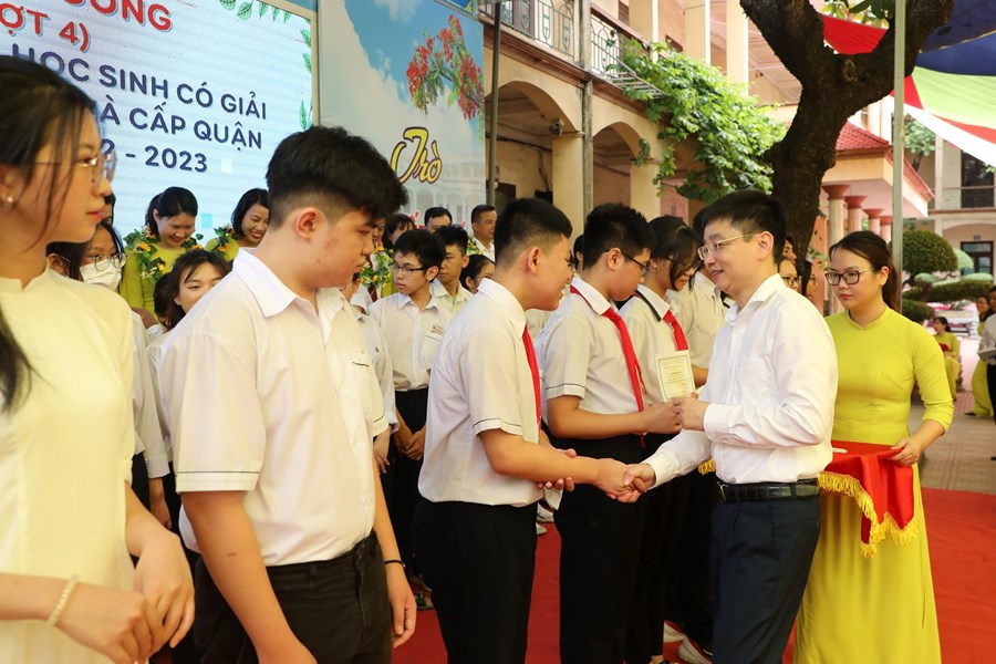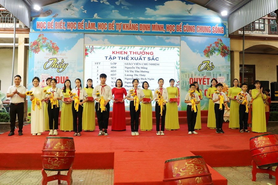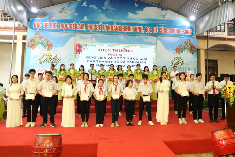 Trong buổi Liên hoan, nhà trường đã biểu dương 09 tập thể xuất sắc: D4, D5, D7, C5, C6, C7, C8, B7, A4; hơn 100 em học sinh đạt danh hiệu Học sinh giỏi các cấp, trong đó tiêu biểu là các em học sinh đạt giải Quốc tế mở rộng, giao lưu văn hóa và Thể dục thể thao như Toán Timo, BBB, Samo, Karate, múa nghệ thuật, …