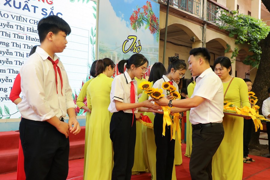 Trong sự thành công của các em không thể không kể tới công sức dìu dắt dạy bảo của các thầy các cô, trong ngày hội vui hôm nay, nhà trường cũng đã vinh danh các thầy cô giáo có thành tích cao trong giảng dạy, bồi dưỡng HSG, các thầy cô giáo là BGK và Giáo viên dạy giỏi trong cuộc thi Giáo viên dạy giỏi cấp Thành phố, cấp Quận năm học vừa qua.