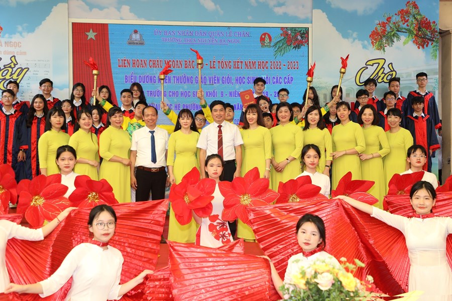 Khi những tiếng ve kêu râm ran, những chùm hoa phượng nở rộ sau tán lá xanh thì cũng là lúc một năm học khép lại. Được sự chỉ đạo của Phòng GD&ĐT quận Lê Chân, sáng nay 23/5/2023, trường THCS Nguyễn Bá Ngọc long trọng tổ chức chương trình Liên hoan cháu ngoan Bác Hồ, Lễ tổng kết năm học; Biểu dương khen thưởng giáo viên giỏi, học sinh giỏi các cấp, chia tay học sinh lớp 9 – niên khóa 2019-2023 và Khai mạc hè phường An Dương năm 2023.