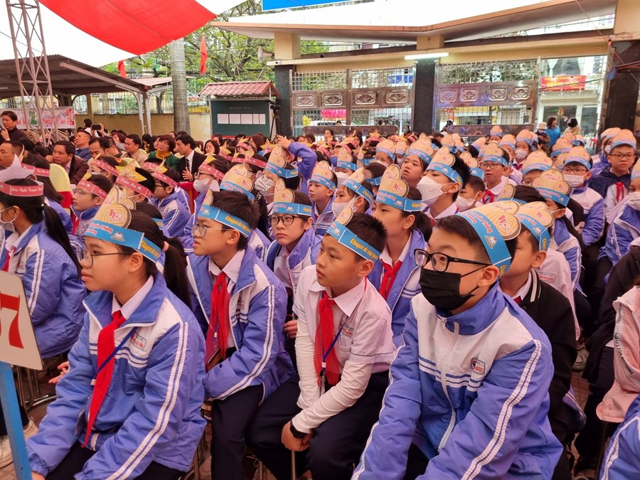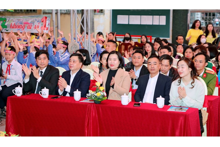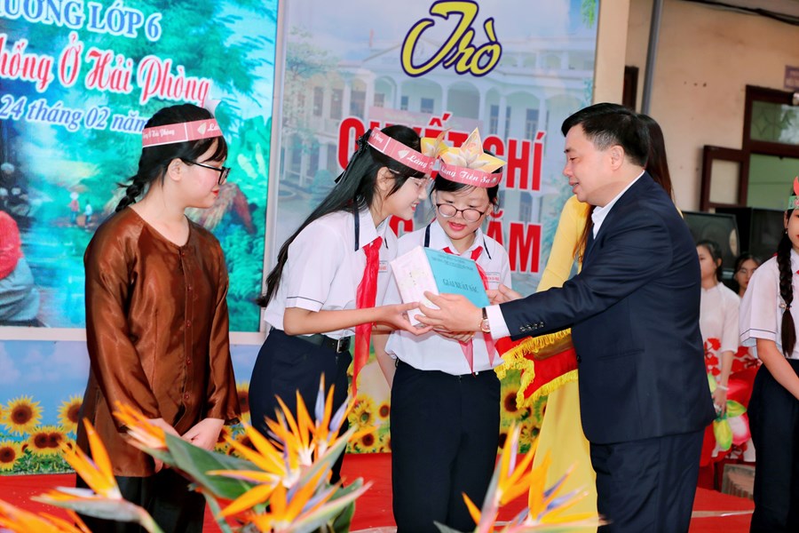 Thầy và trò nhà trường vinh dự được đón tiếp các quý vị đại biểu về dự: Đồng chí Phạm Sỹ Tuyên – Trưởng Phòng GD&ĐT quận, đồng chí Bùi Thị Lệ Quyên – Phó trưởng phòng GD&ĐT quận, các đồng chí là chuyên viên, Ban giám hiệu, giáo viên thuộc các trường THCS trên toàn quận; chị Phạm Thị Diệu Linh – Uỷ viên Ban thường vụ - Trưởng Ban thiếu nhi trường học Thành đoàn; chú Nguyễn Hữu Toàn - Phó giám đốc Cung văn hoá thiếu nhi; chị Hà Thị Minh Châu - Bí thư Quận đoàn Hải Phòng; Ban đại diện CMHS nhà trường,…