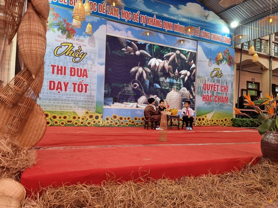 Chủ đề 7 gồm 4 tiết học. Giáo viên triển khai tiết 3,4 của bài học với sự tham gia của toàn thể học sinh khối 6 trong một không gian mở với sân khấu trang trí như một làng quê thu nhỏ với nghề truyền thống mây tre đan vô cùng đặc sắc. Chuyên đề được xây dựng dưới hình thức Hội thi với các nội dung: Giới thiệu đội chơi, Hiểu biết, Báo cáo thu hoạch, Tài năng, Công bố kết quả và trao thưởng.