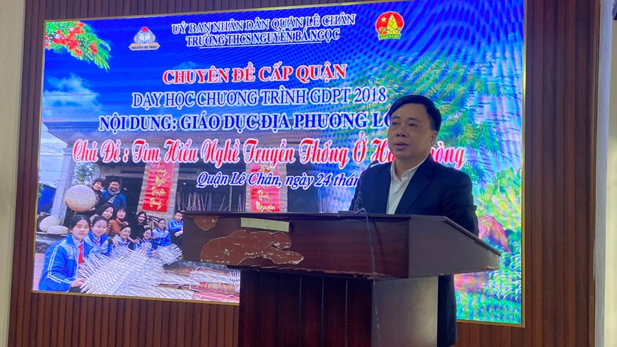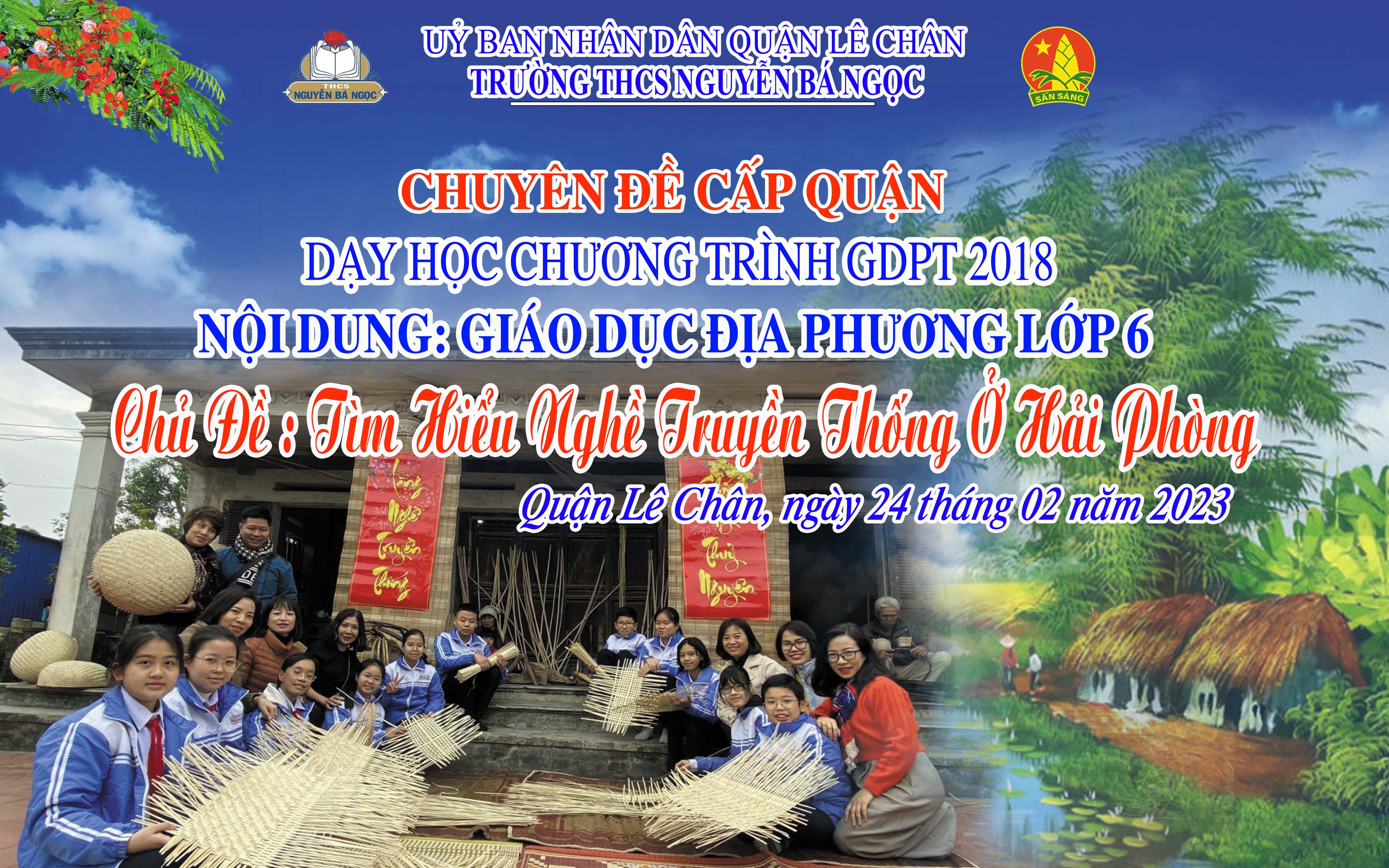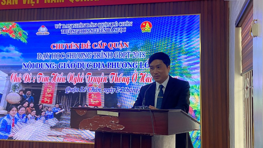 Thực hiện Công văn số 2766/SGDĐT-TrH ngày 31/8/2022 của Sở Giáo dục và Đào tạo Hải Phòng về việc hướng dẫn thực hiện nhiệm vụ Giáo dục trung học năm học 2022-2023, nhằm thực hiện tốt mục tiêu Chương trình Giáo dục phổ thông 2018, được sự chỉ đạo của Phòng GD&ĐT quận Lê Chân, sáng ngày 24/2/2023, trường THCS Nguyễn Bá Ngọc tổ chức thành công chuyên đề chuyên môn cấp quận: Dạy học Chương trình giáo dục phổ thông 2018 – Nội dung Giáo dục địa phương lớp 6 – Chủ đề 7: Tìm hiểu nghề truyền thống ở Hải Phòng.