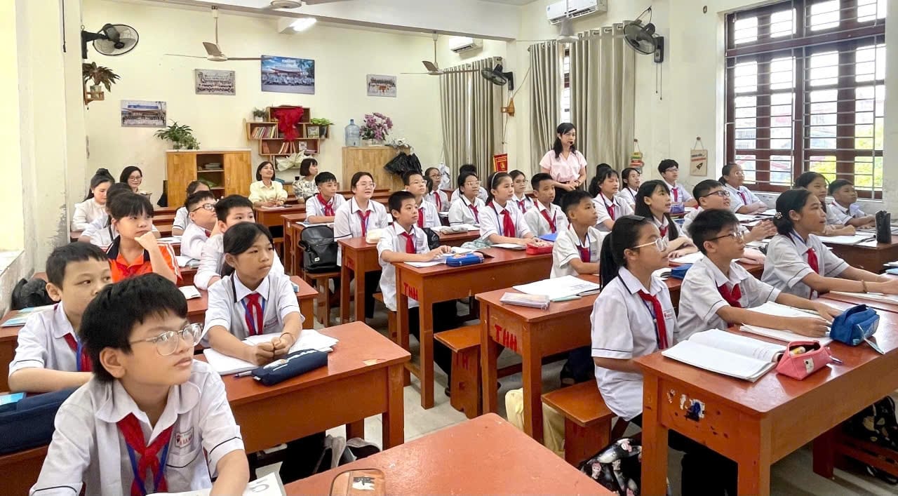 Thực hiện kế hoạch giáo dục năm học 2024-2025 của nhà trường, đồng thời hưởng ứng “Ngày hội chuyển đổi số quận Lê Chân”, hướng tới Ngày hội sáng tạo thiết bị dạy học số ngành GD&ĐT quận Lê Chân, sáng ngày 03/10/2024, cô giáo Nguyễn Phương Nghĩa đã lên lớp chuyên đề sử dụng công nghệ số vào giảng dạy môn Công nghệ 7. Ngày 04/10/2024, cô giáo Bùi Thị Thúy cũng thực hiện lên lớp chuyên đề môn Lịch sử - Địa lý 6 với