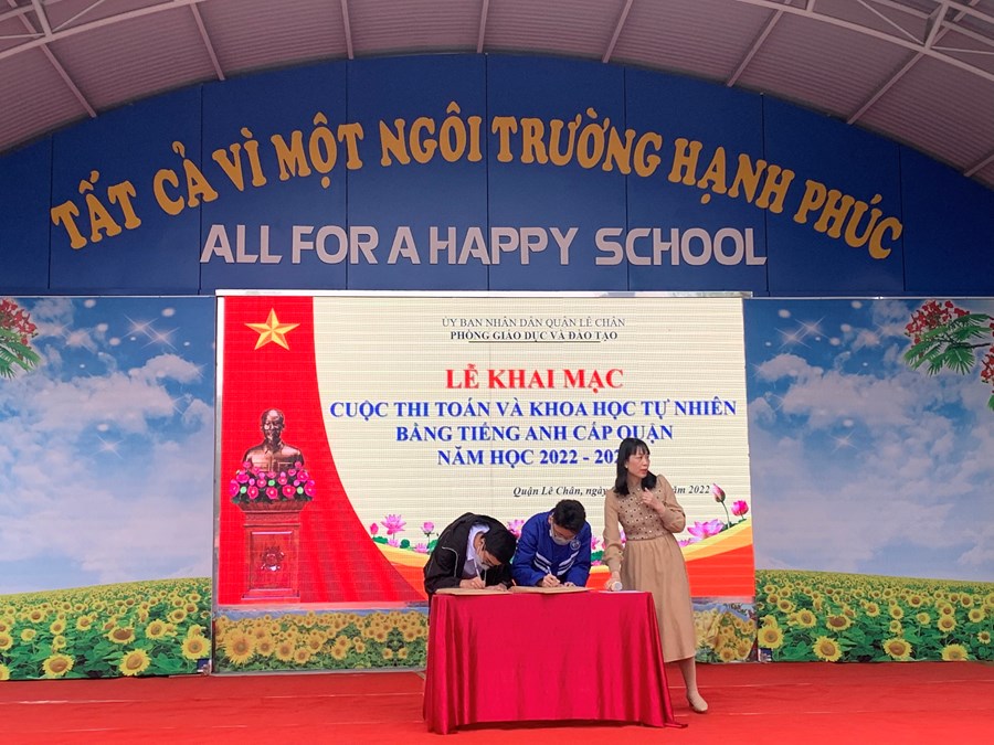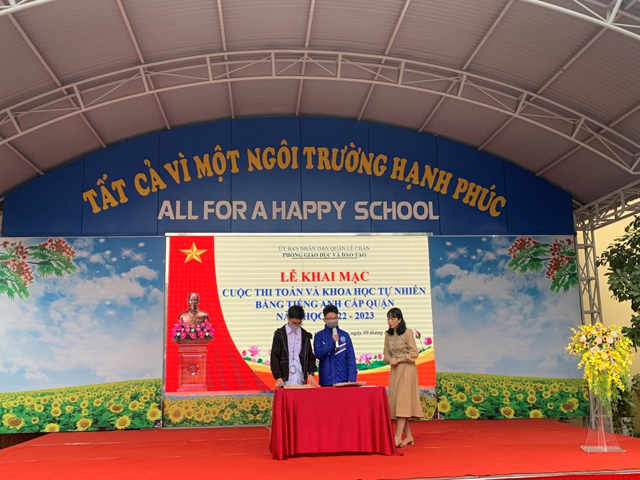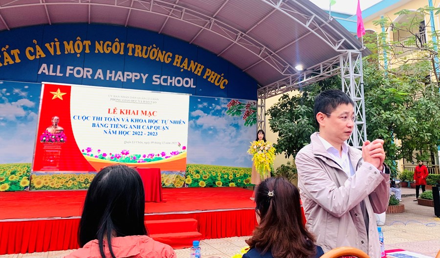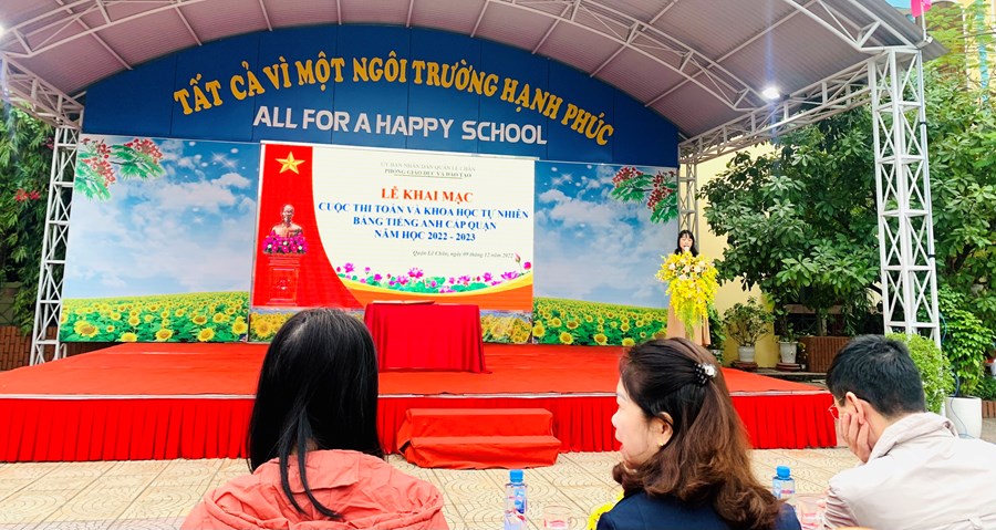 Sáng ngày 9/12/2022, Phòng Giáo dục và Đào tạo Quận Lê Chân đã tổ chức thành công Lễ khai mạc Cuộc thi toán và khoa học tự nhiên bằng tiếng Anh cấp quận, năm học 2022 – 2023 tại trường THCS Lê Chân